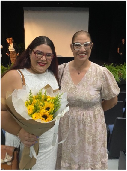 Angeliz Rivera (autora) posa junto a su señora madre en la presentación del documental. (Suministrada).
